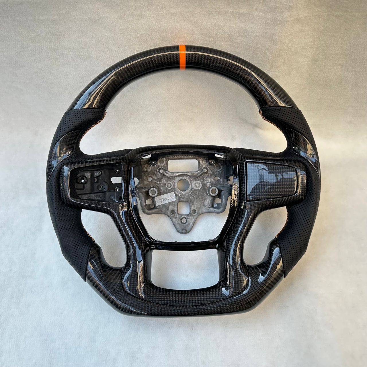This a fully customized genuine OEM steering wheel. It will be D-Cut on the bottom stitched in the color you chose from the options and also wrapped in CF & Leather or material you can choose from our options.